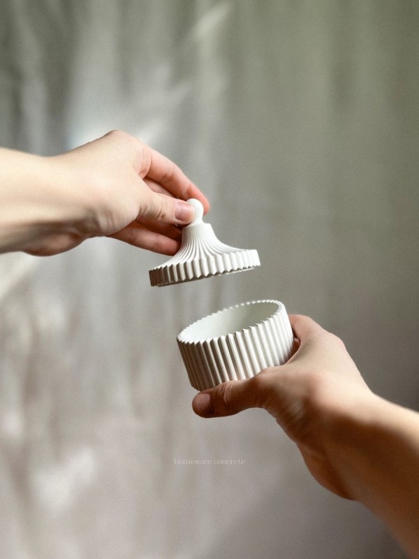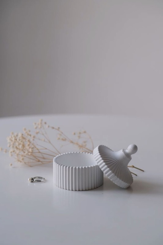 Nuestro alhajero está elaborado artesanalmente en cemento, cuidando cada detalle del proceso para lograr una pieza única y de acabado premium.